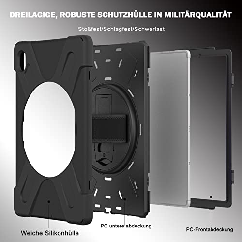 BRAECN Cover Compatibile con Microsoft Surface Pro 7 Plus/Pro 7/Pro 6/Pro 5/Pro 4/Pro LTE 12.3 Pollici, Antiurto Robusto Custodia con Supporto Girevole, Portapencil, Cinghia a Mano e Tracolla, Nero