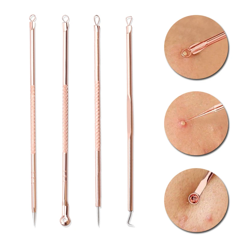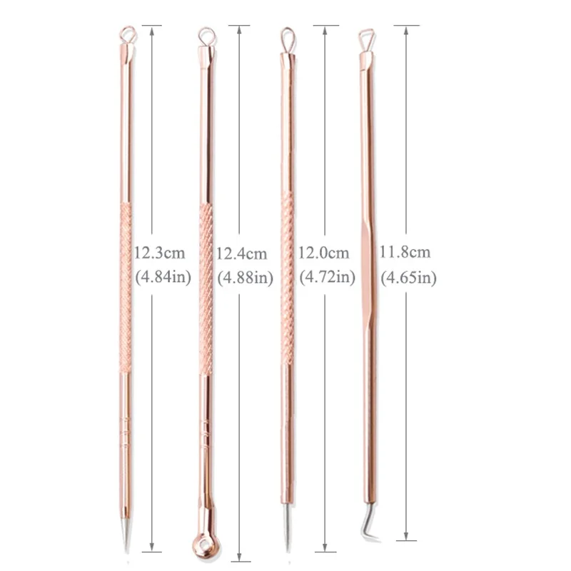 Brainbow 4pcs/Box Acne Removal Needle Blackhead Remover Tweezer Rose Gold Stainess Steel Pimple Extractor Face Skin Care Tools