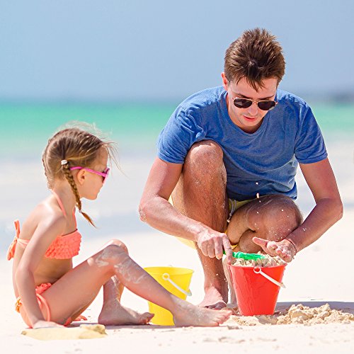 ️COLORI VIVACI E ASSORTITI: I nostri deliziosi secchielli sono disponibili in 4 colori vivaci - rosso, giallo, verde e blu, aggiungendo un tocco di allegria e divertimento alle giornate in spiaggia, al parco o nel cortile di sabbia.