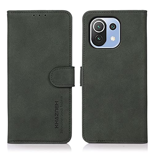 BRAND SET Cover per Xiaomi Mi 11 Lite 4G/5G Custodia protettiva in pelle PU in Stile Retrò, Portafoglio con Chiusura Magnetica Custodia per Xiaomi Mi 11 Lite 4G/5G(Verde Scuro)