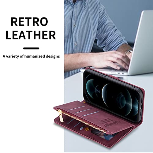 BRAND SET Custodia Portafoglio per Samsung Galaxy A22 4G con Zip Scomparto Slot Carte in Cover pelle PU [Funzione Stand] Magnetica Cover Posteriore per Samsung Galaxy A22 4G-Rosso Grigio