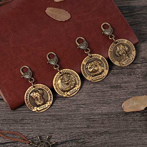 Brand New DaMei Personalizzabile Medaglietta Identificativa Rotonda per Cani o Gatti Nomi Incisione 40mm Vintage 3D Dog Tag Targhetta con Anello (#17)