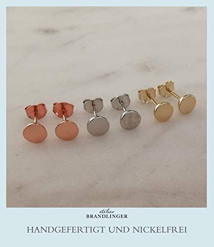 Brandlinger ® Atelier orecchini rotondi e piatti in argento Sterling 925 placcato oro con diametro di 5,5 mm e Argento, colore: rosé, cod. 0702754943236