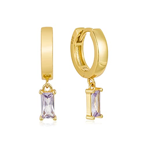 ❤️ Orecchini (paio) d'argento sterling 925, placcato multiple volte in oro giallo (18 carati), zirconi di colore lavanda