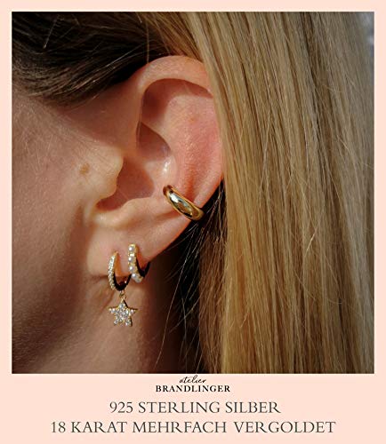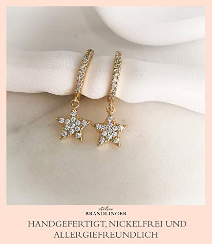 Brandlinger ® Orecchini (paio) d'argento sterling 925 placcato in oro (18 carati), con ciondolo luna o stella