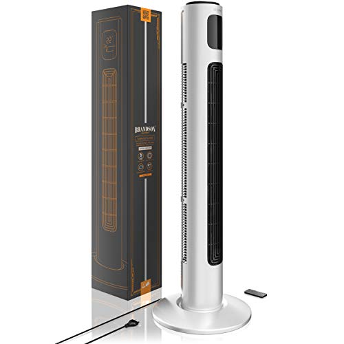 BRANDSON - Ventilatore a torre con telecomando e oscillazione 60° - Ventilatore a colonna - 96 cm - Ventilatore a 3 livelli di velocità - Modello 2020 GS - Bianco perla