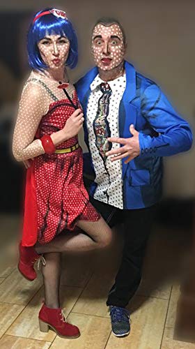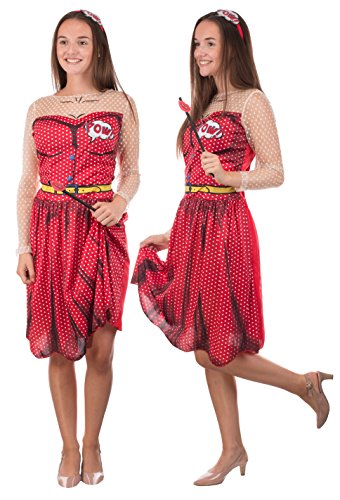 Brandsseller Costume da donna - POP Art - Vestito con cerchietto e accessorio per la bocca del bacio - Carnevale addio al celibato - Taglia: L/XL