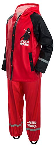 Brandsseller - Giacca impermeabile per bambini, con motivi a tema tra Star Wars, Minions, il pompiere Sam o Paw Patrol, Starwars - rosso/nero, 122 cm-128 cm