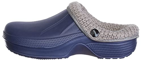 Brandsseller Zoccoli invernali da donna con inserto in maglia, foderati in pelliccia calda, blu navy, 36 EU