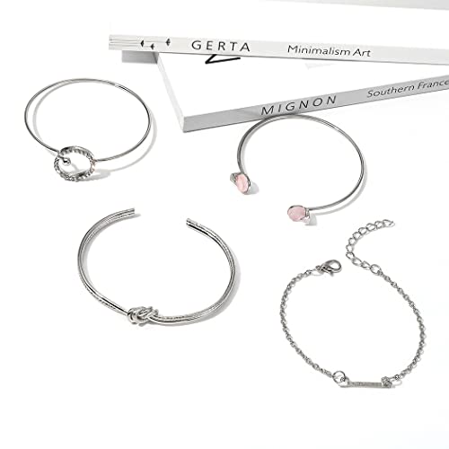 Branets Set di braccialetti in cristallo boho con cerchio in argento, con freccia e strass, per donne e ragazze (4 pezzi)
