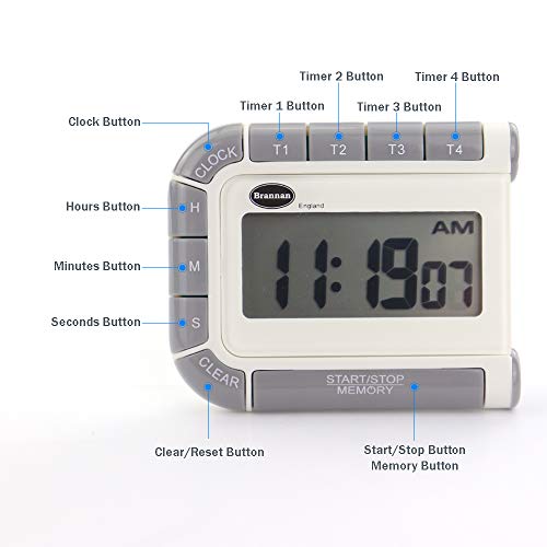 Brannan Timer Digitale, Orologio e cronometro a 4 canali -