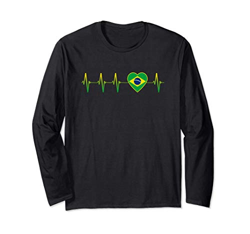 Amo il Brasile Brasiliano Cuore Bandiera Paese I Love Brazil Maglia a Manica