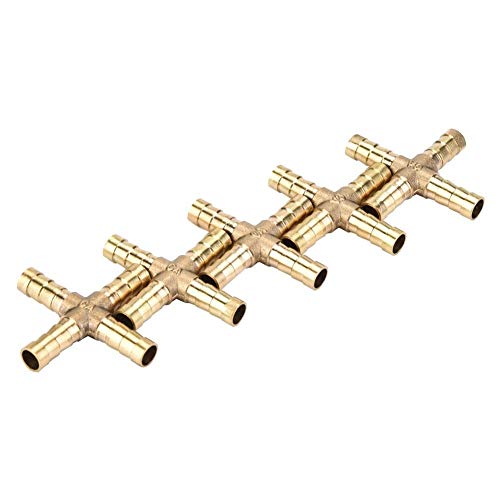 5 pz Brass 4 Way Hose Barb giunto pneumatico giunto universale per tubi Croce Raccordo Connettore Giunto in Rame Adattatore Spinato Aria Acqua Olio Gas Combustibile 6/8/10 / 12mm(8mm)