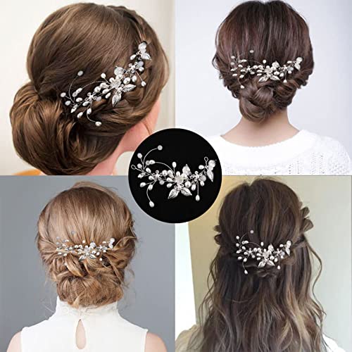 Brateuanoii Accessori Capelli Sposa Argento, Ornamenti di Strass Nuziali, Perla Decorazioni Fiore Vite, in Cristallo per Donne e Ragazze