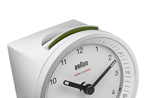 Braun BC07W-DCF Orologio Sveglia Classico Analogico, Radio controllato per Fuso Orario Europa Centrale (DCF/GMT+1), colore bianco.