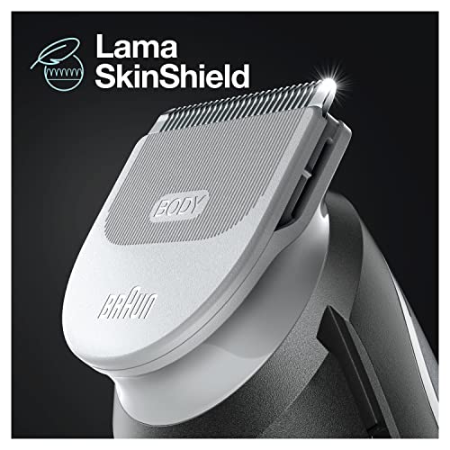 Braun Body Groomer 5 Rifinitore per Depilazione Uomo, Accessori Inclusi, Lama in Metallo, Ideale per Aree Sensibili, Gambe, Petto e Ascelle, Idea Regalo, BG5350 Grigio e Bianco