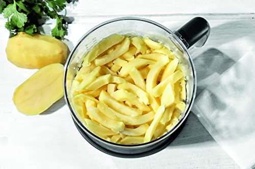IN DOTAZIONE: Tritatutto da 350ml, Frusta a filo in acciaio, Accessorio Purè, Lame per tritare, Gancio per Impastare, disco per patatine fritte, Robot da cucina da 1,5L, Inserto Julienne, 3 Accessori per sminuzzare e Bicchiere da 600 ml realizzato in plastica senza BPA, adatto per il contatto