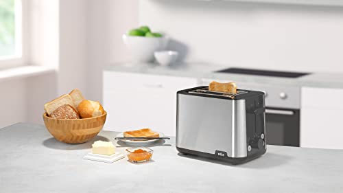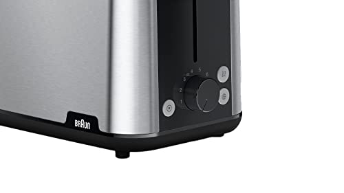 Braun PurShine Tostapane, Tostapane a 2 Fessure, 8 Livelli di Tostatura, Funzioni di Riscaldamento e Sbrinamento, Vassoio Raccolta, HT1510BK, 900W, Nero