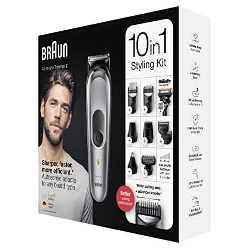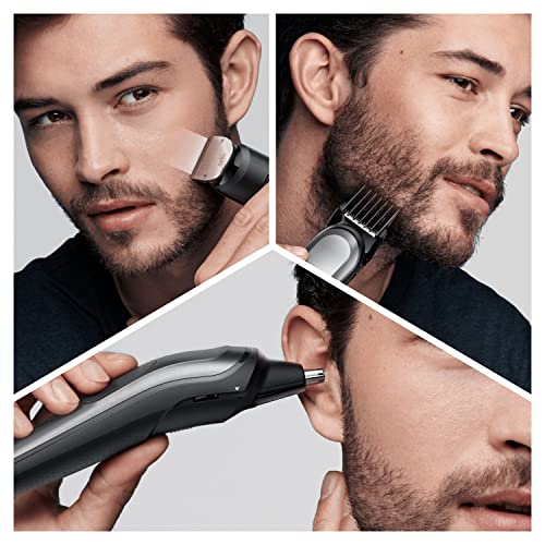 Braun Regolabarba Tagliacapelli Uomo Rasoio Incluso, Rifinitore Barba, 10 in 1 Styling Kit, 8 Accessori, Ideale per Viso, Corpo, Orecchie e Naso, Idea Regalo, MGK7320 All-in-One Girgio Argento