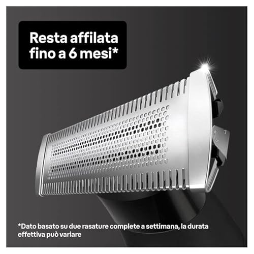 PROGETTATO PER DURARE DI PIÙ: la lama 4D in acciaio inossidabile di questo rasoio elettrico barba rimane affilata fino a 6 mesi (durata calcolata su 2 rasature del viso a settimana, la durata effettiva può variare)