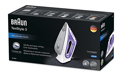 Braun TexStyle 3 SI3042VI Ferro da Stiro a Vapore con 4 Anni di Assistenza, 2350 W, Piastra in SuperCeramic, Riscaldamento rapido, Punta di Precisione, Getto di Vapore 160g/min, Bianco/Viola