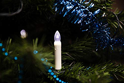 Buono a sapersi: alimentata (con spina), lunghezza del cavo 10 m, distanza delle candele 50 cm, lunghezza totale 29,50 m, altezza della candela 7,5 cm, 40 candele LED con clip di fissaggio, cavo verde, adatto anche per esterni, le candele a LED non si scaldano e offrono una buona alternativa alle vere candele per albero di Natale