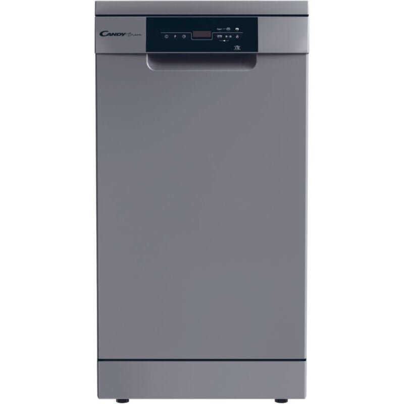 Candy Brava CDPH 2D1047S. Posizionamento dell'apparecchio: Libera installazione, Dimensione: Compatta (45 cm), Colore della porta: Acciaio inossidabile. Numero di coperti: 10 coperti, Classe emissione rumore: C, Emissione acustica: 47 dB. Classe efficienza energetica: E, Consumo di acqua per ciclo: 9 L, Consumo energetico per 100 cicli: 75 kWh. Larghezza: 448 mm, Profondità: 605 mm, Altezza: 846 mm. Larghezza imballo: 510 mm, Profondità imballo: 631 mm, Altezza imballo: 631 mm Design Posizionamento dell'apparecchio Libera installazione Dimensione Compatta (45 cm) Pannellabile No Colore della porta Acciaio inossidabile Colore pannello di controllo Nero Tipo di controllo Touch Display incorporato Sì Regolazione cestello superiore Sì Cestello inferiore Pieghevole Fermo di sicurezza del cestello inferiore No Cerniera porta Standard Prestazione Emissione acustica 47 dB Programmi speciali Auto, Eco 50 °C, Vetro/Delicati, Intensive 70°C, Prelavaggio, Rapido 45 °C, Universal 60°C Sistema di