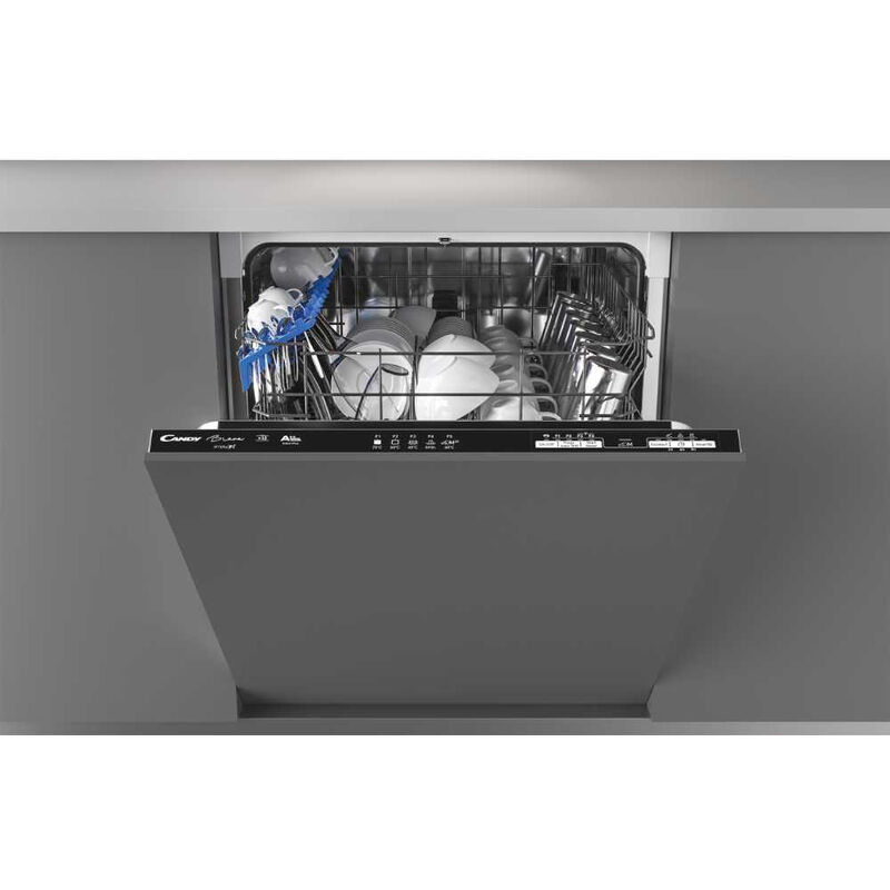 Candy Brava Celdin 2L360PB. Posizionamento dell'apparecchio: A scomparsa totale, Dimensione: Dimensione massima (60 cm), Colore pannello di controllo: Bianco. Numero di coperti: 13 coperti, Classe emissione rumore: C, Emissione acustica: 47 dB. Applicazioni per il controllo supportate: Candy simply-Fi. Classe efficienza energetica: E, Consumo di acqua per ciclo: 10,4 L, Consumo energetico per 100 cicli: 93 kWh. Larghezza: 598 mm, Profondità: 550 mm, Altezza: 820 mm Brava Scopri Candy Brava, la lavastoviglie intelligente che ti aiuta a risparmiare tempo con il ciclo di lavaggio e asciugatura più rapido sul mercato: solo 39 minuti. Risparmia tempo e migliora la tua vita quotidiana con Candy Brava.