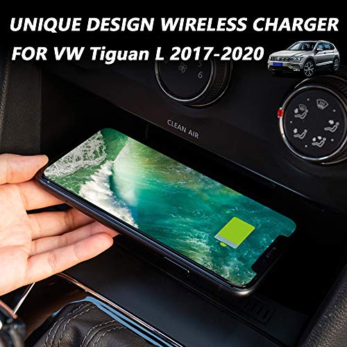 Braveking1 Caricatore Wireless Auto per VW Tiguan 2018-2020 Pannello Accessori Console Centrale, 10W Qi Rapida Ricarica Telefono Pad con QC 3.0 USB Porta per iPhone 12/11/XS/XR/X Samsung S20/S10/S9