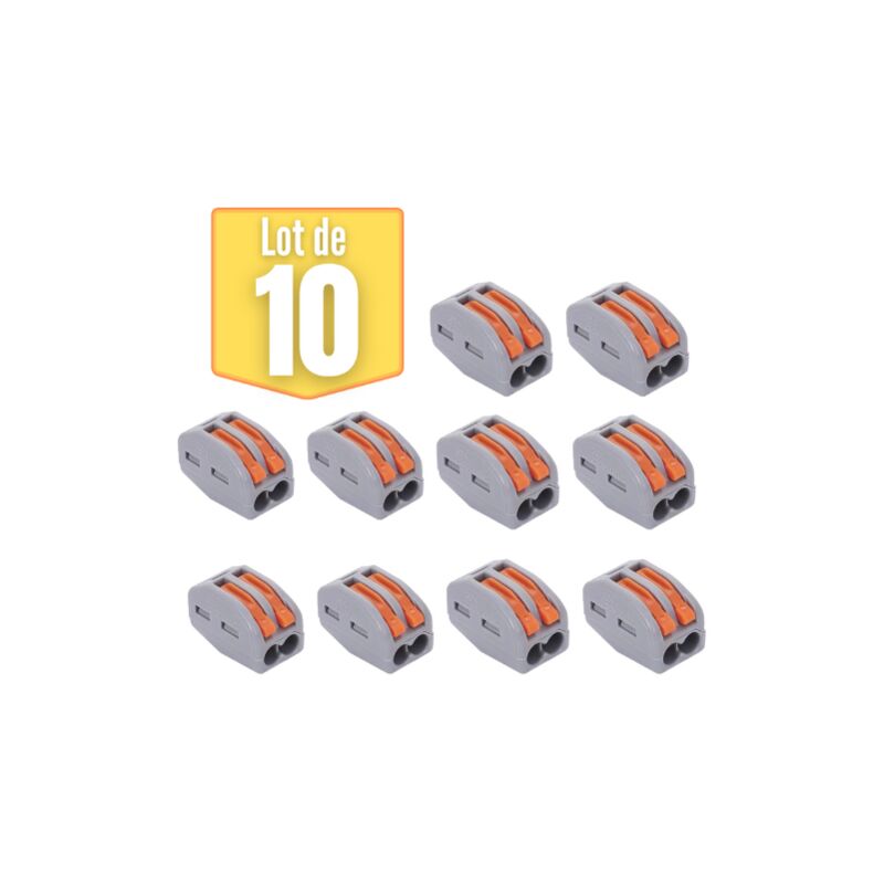 Il batch di 10 terminali di connessione 2 filo con leva, garantisce la corretta connessione dei fili dell'installazione elettrica. Per una semplice installazione E veloce (senza usare un cacciavite). Grazie al sistema di serraggio della molla, basta sollevare la leva, inserire il filo adeguato e abbassare la leva per ottenere una connessione sicura. Questo terminale di connessione a 2 fili con leva ha un marcatore di lunghezza per lo stripping del filo, che si trova sulla parte inferiore del terminale. Il diametro dei fili elettrici può variare da 0,08 mm a 4 mm. prodotto in conformità con standard questo e direttiva ROHS .