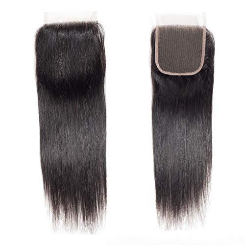 Brazilian Straight Hair Bundles with Closure 10A Unprocessed Brazilian Hair Bundles With Closure Braizlian Human Hair Weave Straight Natural Black (8 10 12+8 Inch)