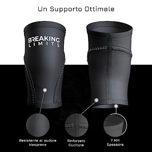 BREAKING LIMITS Ginocchiera Powerlifting - Ginocchiere Palestra a Compressione per Allenamento con Pesi, Crossfit, Sollevamento Pesi, Squat - Neoprene 7 mm (XS)