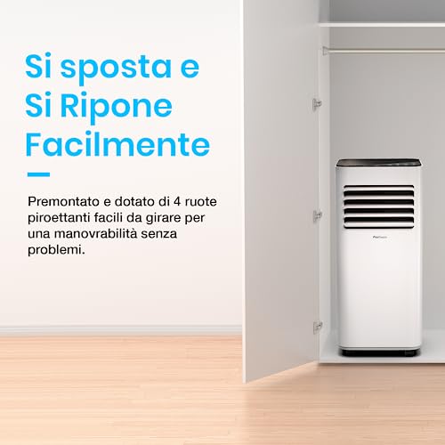 POTENTE RAFFREDDAMENTO: Questo condizionatore 7000 BTU fornisce un raffreddamento forte ed efficace fino a 15°C in case, soggiorni, camere da letto e uffici di piccole, medie e grandi dimensioni.
