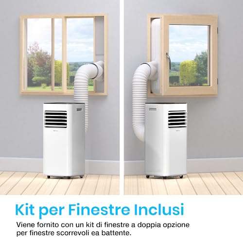 KIT PER FINESTRE INCLUSI: Abbiamo incluso due kit di ventilazione delle finestre facili da installare con la nostra unità AC per adattarsi a finestre scorrevoli o battenti usando le istruzioni passo passo fornite. Il suo design salvaspazio garantisce anche una minima intrusione.