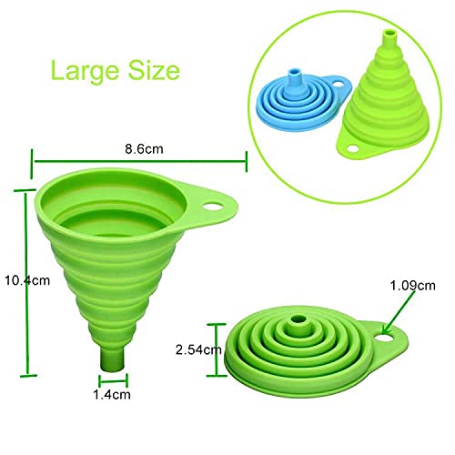 BREEZO Imbuto pieghevole, confezione da 4 imbuti in silicone per cucina e casa, bottiglie di acqua, liquidi e polvere, per alimenti, 4 colori (2 grandi + 2 piccoli)