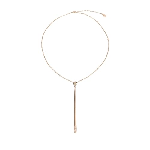 Collana girocollo da donna in acciaio inox rosa satinato con lungo ciondolo a forma di goccia, collezione illusione