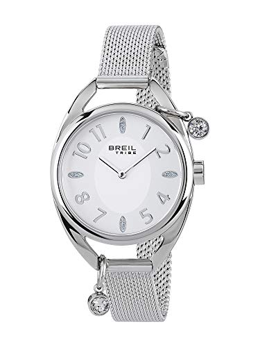 Orologio Solo Tempo Da Donna Di Breil Tribe Della Collezione Trap. Orologio Con Cassa In Acciaio Del Diametro Di 32 Mm, Quadrante Bianco Con Dettagli Silver E Bracciale In Acciaio Maglia Milanese Con Charm E Cristalli Con Chiusura A Scorrimento Con Meccanismo Di Sicurezza. Orologio Con Movimento Al Quarzo Y120 E Resistenza All'Acqua Di 3 Atm.