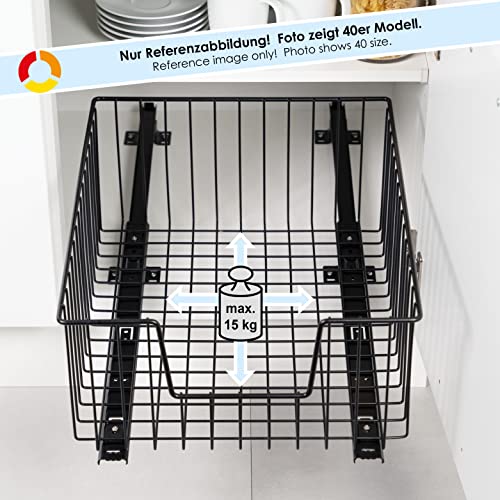 Bremermann - Cassetto telescopico da 30 cm di larghezza, con ripiano, cassetto da cucina (nero).