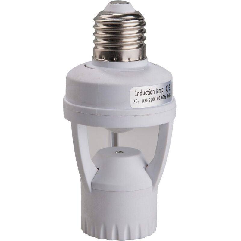 PORTALAMPADA ADATTATORE CON SENSORE DI MOVIMENTO 360 Porta lampada con rilevatore di movimento 360°Con montatura da E27 per lampadine fino ad un massimo di 60 W (si raccomanda una lampadina a risparmio energetico).Durata di accensione regolabile da circa 10 secondi a circa 5 minuti.Con interruttore crepuscolare regolabile.Per l'utilizzo in ambiente interno.Segnalatore di movimento orientabile con angolo di rilevamento massimo di 360° e raggio d‘azione massimo di 6 m.