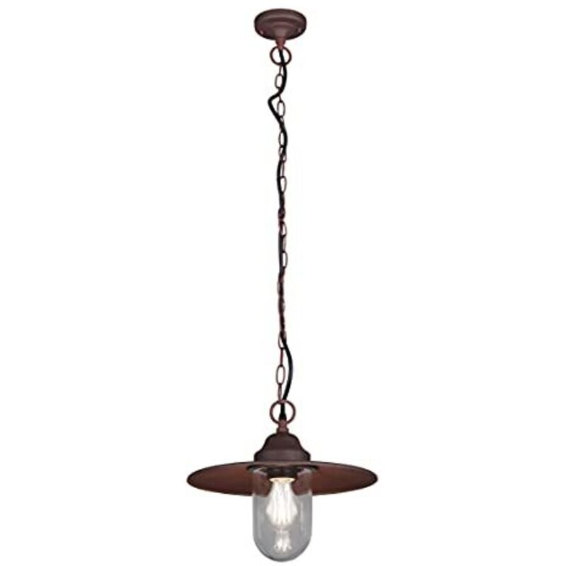 BRENTA SOSPENSIONE DA ESTERNO FUSIONE DI ALLUMINIO VERNICIATA EFFETTO RUGGINE CON DIFFUSORE VETRO TRASPARENTE IP44 Gruppo di Prodotto: Sospensione Tipologia: Esterno Tecnologia: Lampadina esclusa Stile: Vintage Materiale: Pressofusione di alluminio Colore finitura: Pressofusione di alluminio Fonte di luce principale: escl. Fonte di luce principale attacco: E27 Fonte di luce principale numero di attacchi: 1 Fonte di luce principale Watt: 4,5 Fonte di luce principale Lumen: 470 Fonte di luce principale Kelvin: 2700K Fonte di luce principale Volt: 230 Fonte di luce principale durata nominale (h): 10000 Altezza (cm): 120 Diametro (cm): 30 Classificazione IP: IP44 Classe di protezione: 1 Montaggio a soffitto: SI