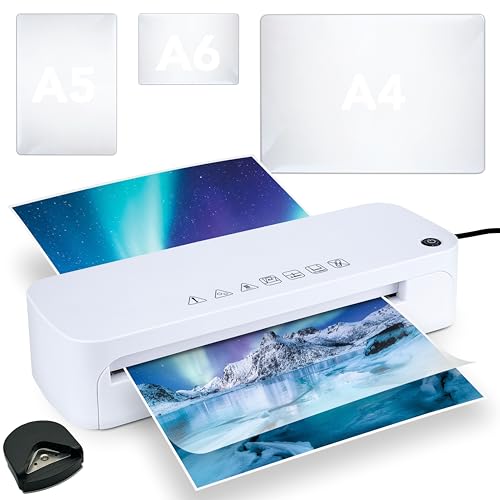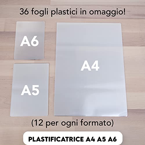 Bresam Plastificatrice per Fogli A4 A5 A6 Laminatrice a Caldo con Sistema Abs Anti Inceppamento, Macchina per Plastificare Fogli e Progetti In Carta Plastificata Compresi 36 Fogli e una taglierina