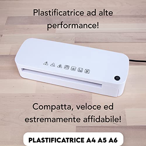 POTENTE E PROFESSIONALE: La Macchina è pronta da Utilizzare dopo soli 2-4 Minuti dall'accensione ed inoltre è prevista di pulsante Abs, Così in caso di inceppamento della carta, è possibile spegnere il Laminatore premendo l'apposito tasto e quindi estrarre la carta in sicurezza e in modo pratico