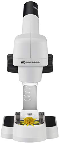 Bresser Junior 8856500 - Microscopio con ingrandimento 20x, piastra bicolore, illuminazione a LED, colore: Bianco
