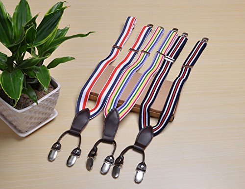 Bretelle elastiche per bambini 4 Bretelle regolabili con clip [Gessato, blu]