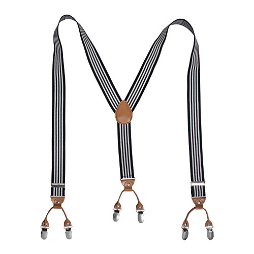 HBF Bretelle Uomo Eleganti con Papillon Nero 6 Clip Bretelle Righe Vintage Adatto per Donna e Uomo Bretelle elastiche Forma di Y