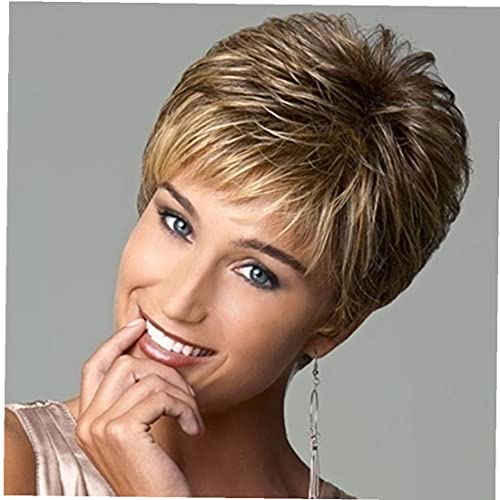 Breve Biondi parrucche di capelli strato Puffy termoresistente Pezzi capelli per le donne Female Natural uso quotidiano (marrone dorato) comodo da indossare