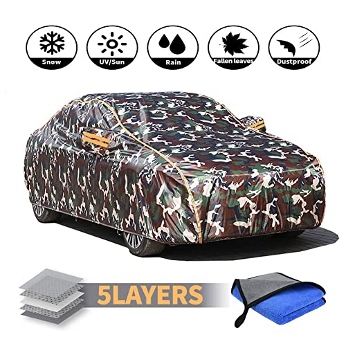 【Impermeabile e resistente alle intemperie】 - La copertura per auto a 5 strati è realizzata in materiale di alta qualità, PE e PEVA e pellicola di alluminio, cotone spesso: nessuna preoccupazione per i graffi. Disponibile per tutte e quattro le stagioni!