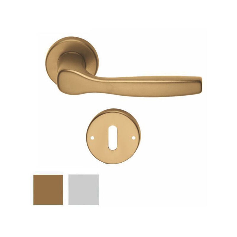 Serie Ginevra - Alluminio bronzato/argentato Bocchetta foro chiave mm 45 Quadro maniglia mm 8 Fissaggio rosetta con viti Per porte legno interne