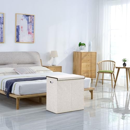 【Grande Capacità】 Dimensione: 65 x 64 x 36 cm. Il cesto della biancheria ha 2 sezioni e può separare i vestiti bianchi e colorati.