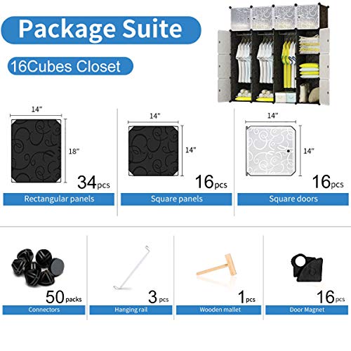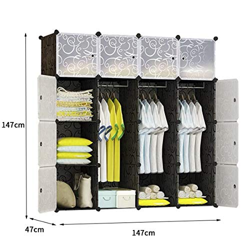 BRIAN & DANY Armadio Modulare con 16 Cubi, Scaffale Componibile con Ante, Guardaroba Organizzatore Economico, Strutture per Cabine in Plastica, 148 x 47 x 148 cm